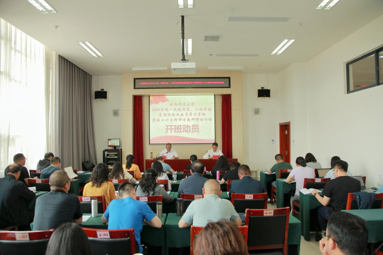5月10日,fun88官网2023年春季学期统一战线代表、二级单位党组织统战委员学习贯彻党的二十大精神专题研修培训班在昆明市委党校开班。校党委书记张祖武参加开班仪式并作动员讲话。开班仪式由校党委常委、统战部部长、校办主任吴雁江主持。