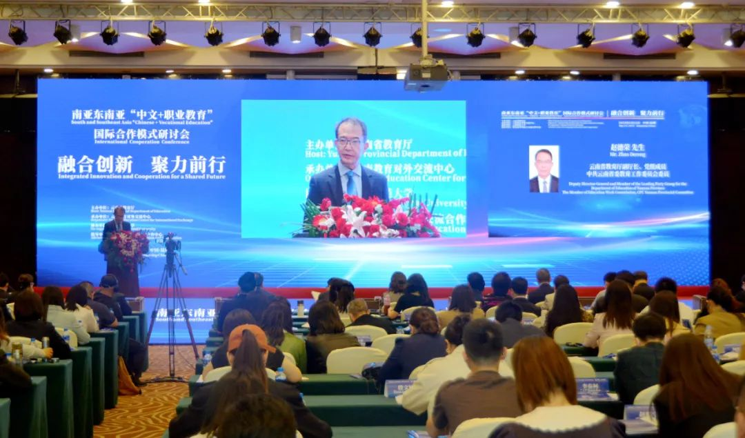 赵德荣在致辞中强调,云南与南亚东南亚国家山水相连,人文相亲,交流合作密切,友谊源远流长。长期以来,云南省委省政府高度重视教育事业发展,高位推动云南教育主动服务和融入“一带一路”建设,面对新形势、新要求,云南面向南亚东南亚“中文+职业教育”国际合作有着广阔的发展前景。要加强“中文+职业教育”与国际接轨的课程标准和教材建设,加快“中文+职业教育”双师型人才培养步伐,建立国际化的“中文+职业教育”数字资源服务平台,深入推进合作办学模式创新,努力打造和培育云南特色的“中文+职业教育”品牌。