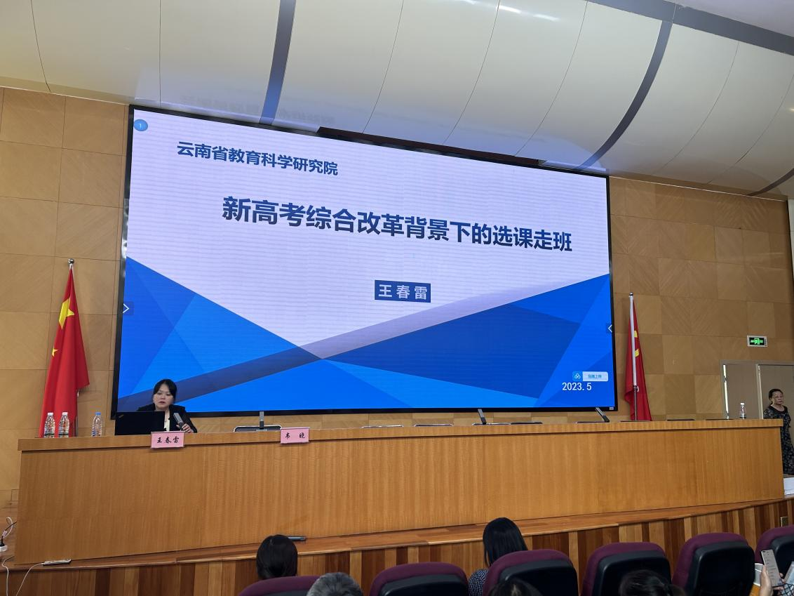 五所学校经验分享后,云南省教科院王春雷老师作《新高考综合改革背景下的选课走班》主题讲座,基于调查研究探讨“如何选课走班,选课走班的注意事项”等问题,给老师们带来实用建议。