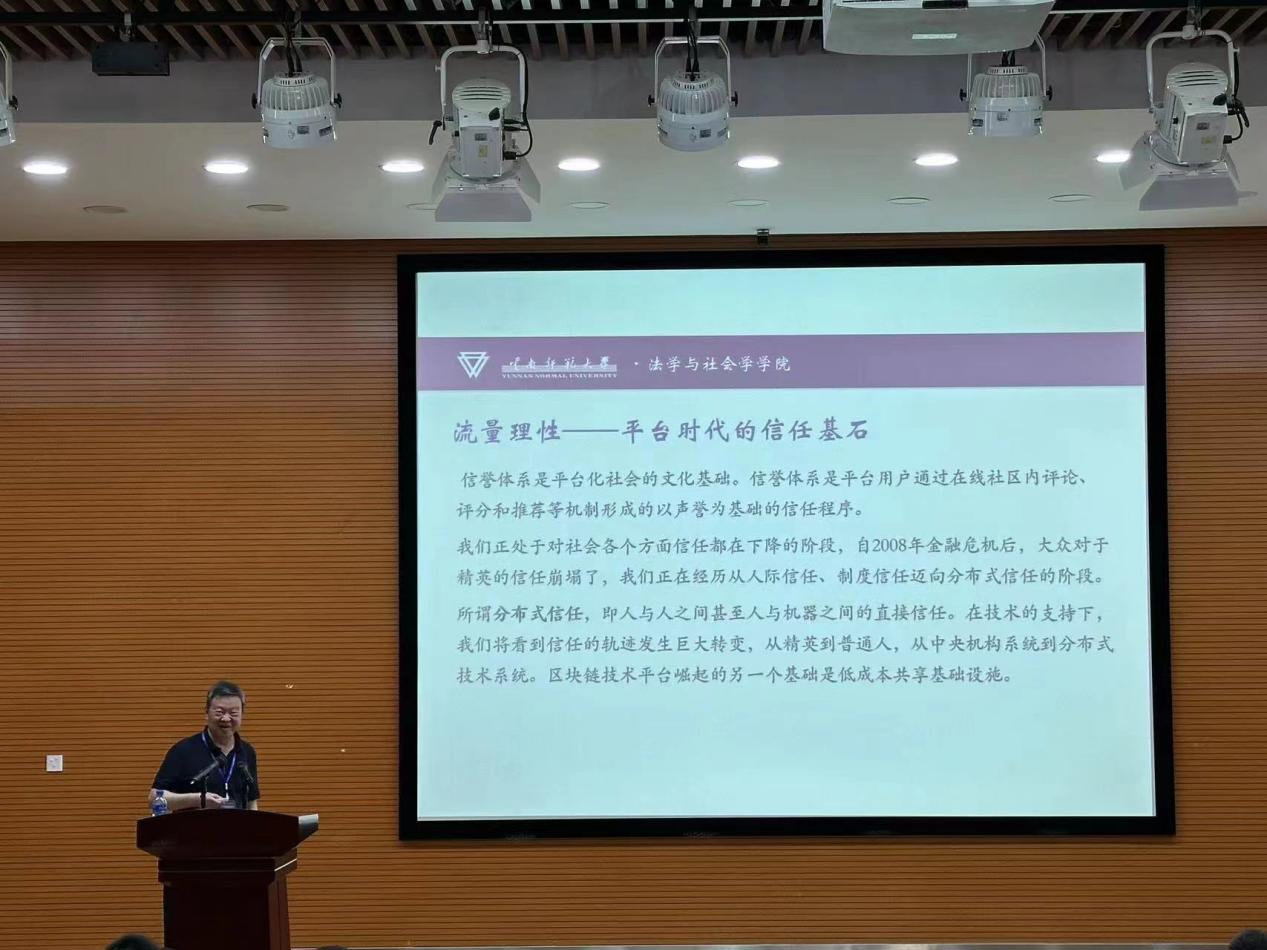 随后,周大鸣以《平台时代与中国人的美好生活》为题进行主旨发言,发言环节由法学与社会学学院院长尤伟琼教授主持。周大鸣围绕“关系”,对平台如何转型为数字基础设施等问题进行分析,认为利用恰当的技术建立一个“足够智慧”的城市,发挥数字基础设施的作用,发挥“人类智能”形塑出适当的人机关系等是当下研究者和数字实践者需要思考和处理的问题。