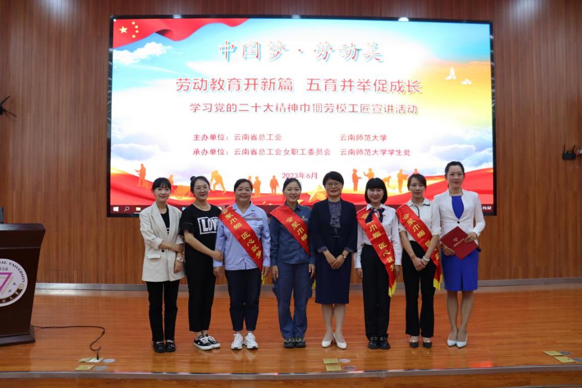 当天下午,“劳动教育开新篇 五育并举促成长”学习党的二十大精神巾帼劳模工匠宣讲会在fun88官网汇学楼报告厅举行。云南省总工会女职工委员会副主任、女职工部部长余庆湘,云南省总工会宣传教育网络部贺靖坤,fun88官网党委副书记李宏,相关部门主要负责人,各学院(学部)副书记、辅导员、学生代表等500余人聆听了宣讲,学校25个分会场1万余师生同步收看网络直播。