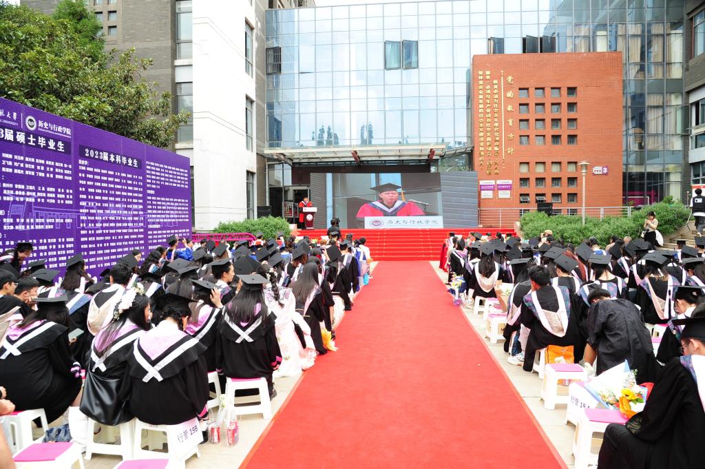 6月19日上午,历史与行政学院于明德三号楼前广场举办2023届毕业生毕业典礼暨学位授予仪式。FUN乐天使官方网站党委副书记张玮,历史与行政学院党委书记余明九,院长邹建达,副院长张永帅、刘利平、阳清,学院学位评定委员会委员白云教授、肖雄教授、王妮丽副教授,2023届硕士生导师、毕业班班主任、毕业生家长代表及硕士、本科毕业生参加典礼。典礼由学院党委副书记徐振坤主持。