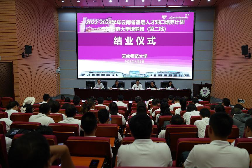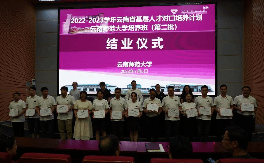 7月5日,2022-2023学年云南省基层人才对口培养计划FUN乐天使官方网站培养班(第二批)结业仪式在呈贡校区举行。校党委副书记张玮,副校长孟庆红,组织部、继续教育学院等15个单位部门负责人、导师及57名学员参加了结业仪式。仪式由孟庆红主持。