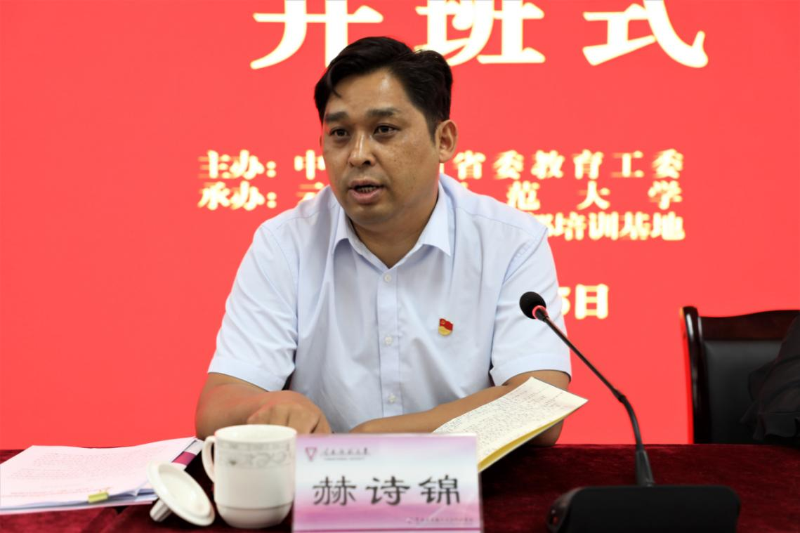 赫诗锦强调,省委教育工委高度重视对全省高校思政教师的培训工作,此次培训是开展大学习、大培训、大练兵、大比武的重要内容,也是学校思政课改革创新的重要举措。他向全体参训教师抛出了“四个之问”,即“第一之问”“五年之问”“六要之问”“三天之问”,并以深入的思考和鲜活的实例回答了“四个之问”。他总结了几年来云南学校思政课创新取得的主要成效,希望参训教师明确自身作为高校第一梯队的身份,贯彻落实“六要精神”,同时也在这三天的时间里一心一意学习,提高理论武装和党性修养,加强思想淬炼、政治历练、实践锻炼和专业训练,严守纪律,真正做到在本次培训中学有所思、学有所悟、学有所得。