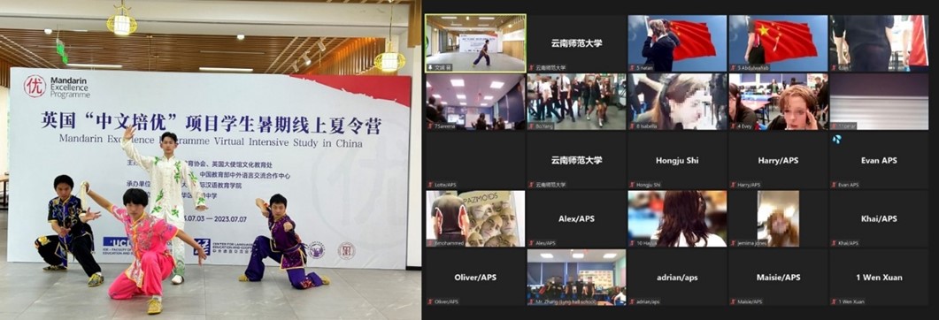 在为期5天的线上夏令营中,学院项目教学管理团队围绕“熊猫与动物园”“校园生活”“历史与文化遗产”三个主题,为英国Alexandra Park School、Cowley International College、Lyng Hall School和Archbishop Sentamu Academy4所学校的教师代表和93名中学生提供了直播授课、视频游览、民俗体验、语伴家庭参访等内容丰富的中文教学和文化体验活动。云铜中学40名中学生参与了语伴交流活动。FUN乐天使官方网站国际汉语教育学院王秀成院长、相关院领导和师生代表参加了开幕式。