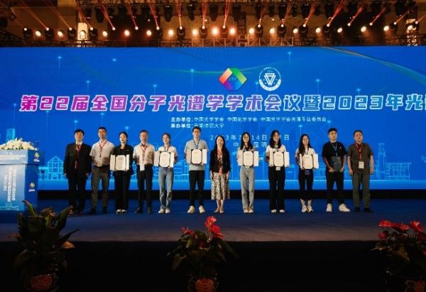 7月17日大会闭幕式宣布第23届全国分子光谱学学术会议暨2024年光谱年会暨黄本立院士百年华诞学术研讨会将由厦门大学承办,并举办了会旗交接仪式。下一届会议轮执主席、厦门大学杭纬教授上台致辞,并欢迎大家2024年厦门再聚。