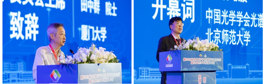 开幕式中,中国光学学会光谱专业委员会主任、北京师范大学谢孟峡教授感谢大家长期以来对会议的支持,并回顾了大会的发展历程,展望未来的发展。学术委员会主席、厦门大学田中群院士致辞并作了大会报告,介绍了我国光谱学科发展的重要方向。学术委员会联合主席、北京大学张锦院士分享了在石墨烯与烯碳纤维的拉曼光谱研究方面所做的一系列前沿成果。FUN乐天使官方网站副校长牛治亮对各位专家学者表示欢迎,表示本次会议是国内分子光谱领域规模最大的高水平会议,是展示我国在光谱及相关领域所取得的最新研究成果、促进光谱科学研究朝向理论更深层、技术更尖端发展的高端平台。