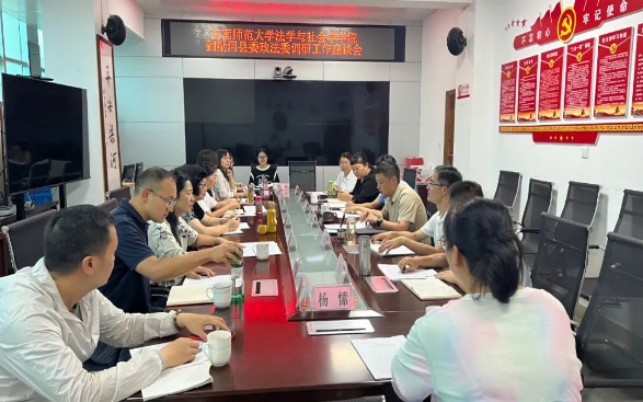 调研组一行到梁河县政法委开展调研,县政法委、司法局、禁毒办、公安局等单位负责同志参加了座谈。会上,县委政法委书记蒋辉介绍了2023年上半年全县政法工作情况及与法社学院的合作意向。通过座谈,调研组了解了全县司法、禁毒、基层治理等工作情况,双方就合作内容展开了深入讨论,并在学生实习实践、教育培训、理论研究、业务指导等方面达成合作意向。会后,调研组一行深入遮岛镇团结社区、南甸社区实地查看智慧化管理平台及矛盾纠纷人民调解室建设情况。