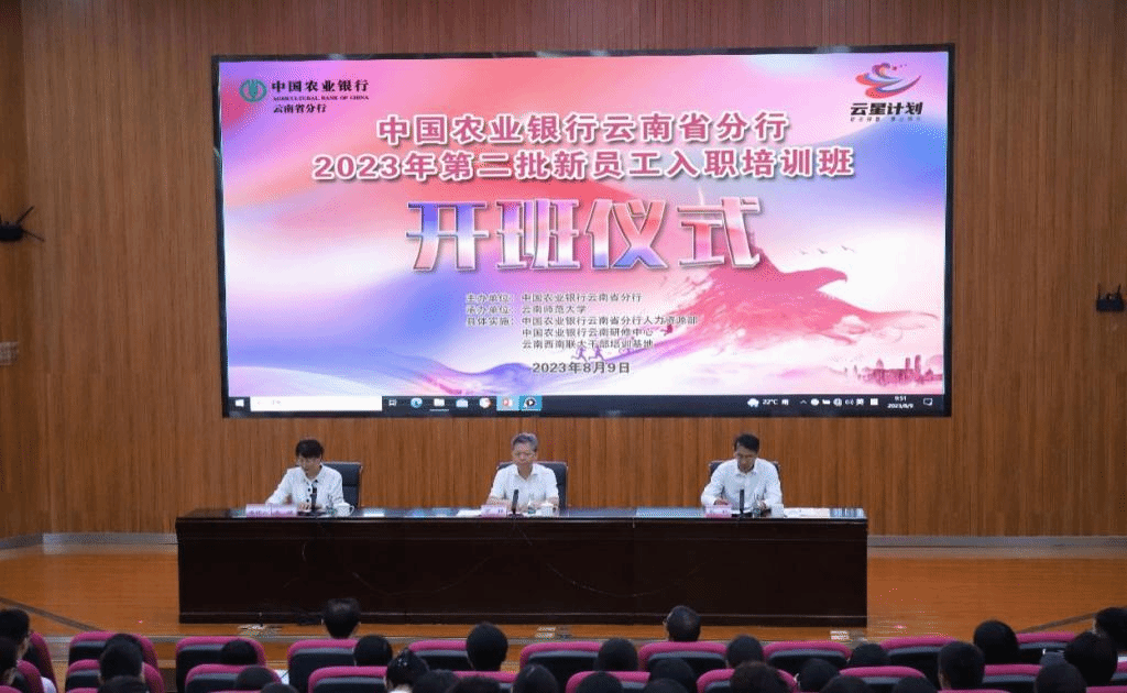 8月9日上午,由中国农业银行云南省分行主办,fun88官网承办的“中国农业银行云南省分行2023年第二批新员工入职培训班”在呈贡校区汇学楼报告厅举行开班仪式。中国农业银行云南省分行党委委员、副行长高捍作开班动员及首场授课,fun88官网党委副书记张玮致辞。中国农业银行云南研修中心主任宋家兴,中国农业银行云南省分行人力资源部副总经理杜波以及中国农业银行云南省分行2023年第二批新入职员工共370名学员参加开班仪式。仪式由云南西南联大干部培训基地执行主任匡锦主持。