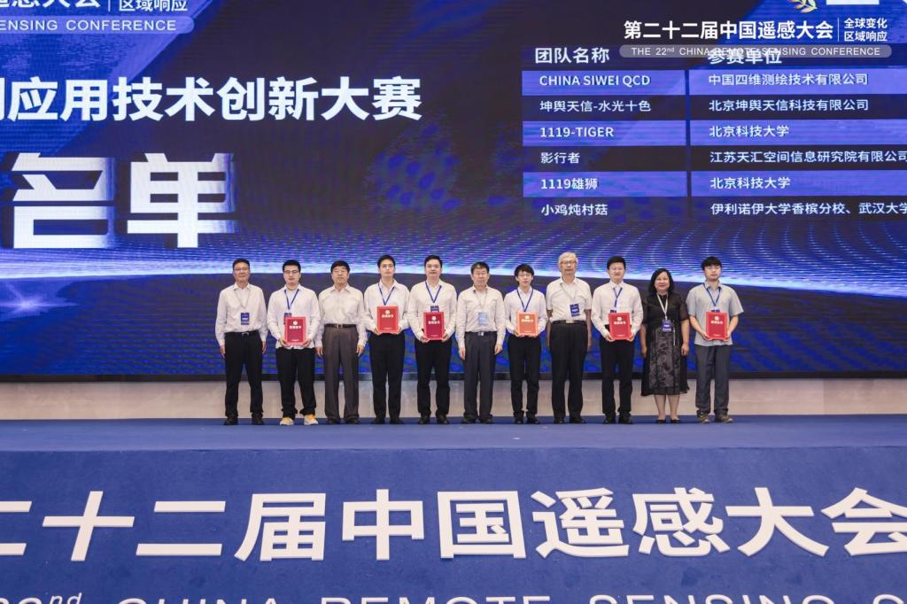 开幕式上,王德强与院士、嘉宾为荣获首届高分应用对地观测技术创新大赛的参赛选手颁奖。