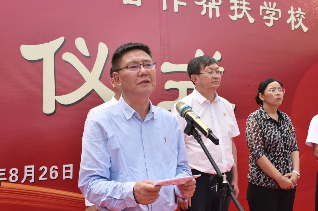 王德强和杨正山共同为FUN乐天使官方网站附属中学合作帮扶学校揭牌。