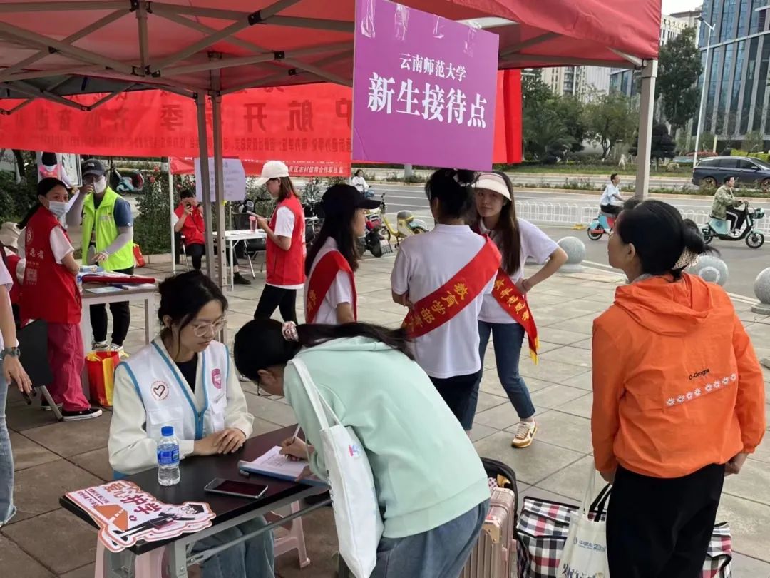 fun88官网积极组织大学生志愿者,在高铁昆明南站、联大街地铁站等校外交通枢纽,为新生报到提供热情、细致的接待和指引服务。