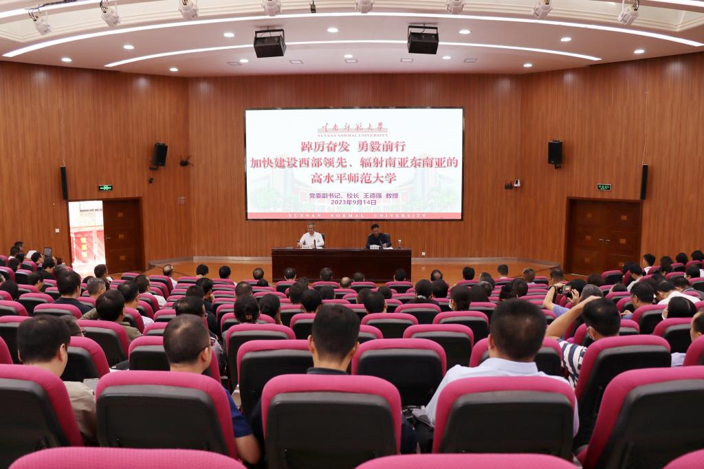 王德强强调,新学期要以立德树人为根本,以学科建设为引领,以改革创新为动力,坚持问题导向、坚持目标导向、坚持深化改革,把开展主题教育与落实年度重点工作任务紧密结合起来,以《FUN乐天使官方网站教育高质量发展三年行动实施方案(2023-2025)》为抓手,推动学校第十三次党代会目标任务落地,推进西部领先、辐射南亚东南亚的高水平师范大学建设。一是全面加强党的建设,引领高水平师范大学建设;二是以升学率提高5%为目标,持续提升人才培养质量;三是大力开展服务云南基础教育强师兴校行动,进一步彰显教师教育本色;四是以新增博士点数实现新跨越为目标,带动学科建设上新台阶;五是聚焦基础研究与社会产业发展,不断提升科研创新能力;六是加强师资队伍建设,打造高质量人才队伍;七是持续推进开放办学,进一步增强面向南亚东南亚的科教辐射能力;八是主动作为,不断拓展提升服务社会能力;九是提质增效,不断提升治理体系和治理能力现代化水平。