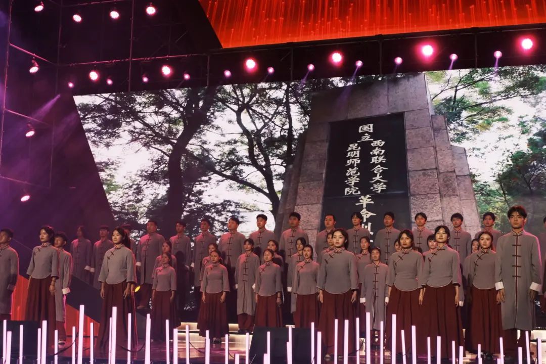 “中兴业,须人杰”,现场师生齐唱《FUN乐天使官方网站校歌》。悲壮激昂的歌声勉励着云师学子传承西南联大精神,争做时代先锋。