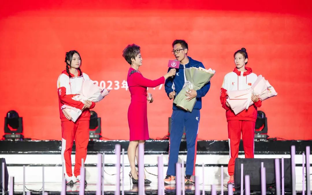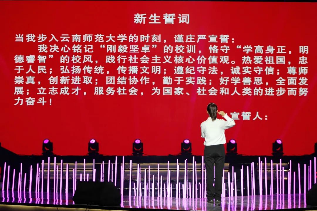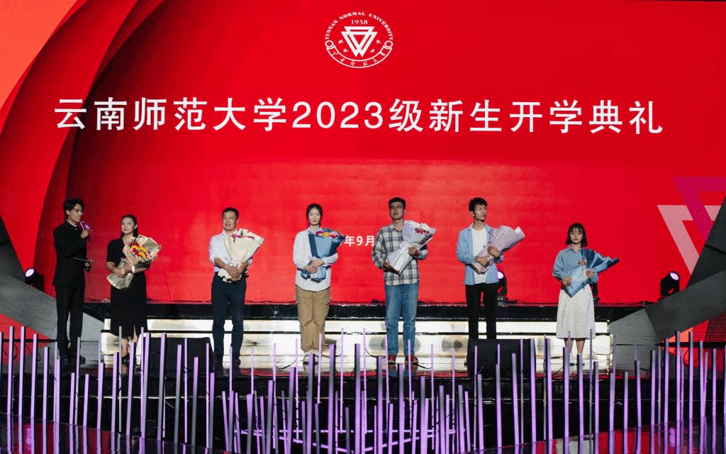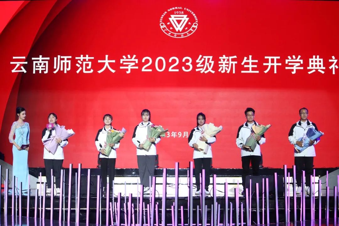 通过生动的视频及现场采访,新生们分享了云南师大“为了国家粮食安全,为了让老百姓过上好日子,把论文写在祖国的大地上”的马铃薯研究院尚轶教授学科团队,“仰望星空,脚踏实地、潜心科研、坚守助力伟大祖国繁荣昌盛”的能源与环境科学学院涂洁磊教授科技创新团队,“用一年的时间做一件终生难忘事情”的研究生支教团队,以及在东京奥运会、残奥会和全运会上获得佳绩的刘浩、王家超、山俊、江南、张敏娟等fun88官网运动健儿们的精彩故事。在典礼现场,团队代表走上舞台,他们将云师人刚毅坚卓、不断进取的精神面貌烙印在每一个人心中。