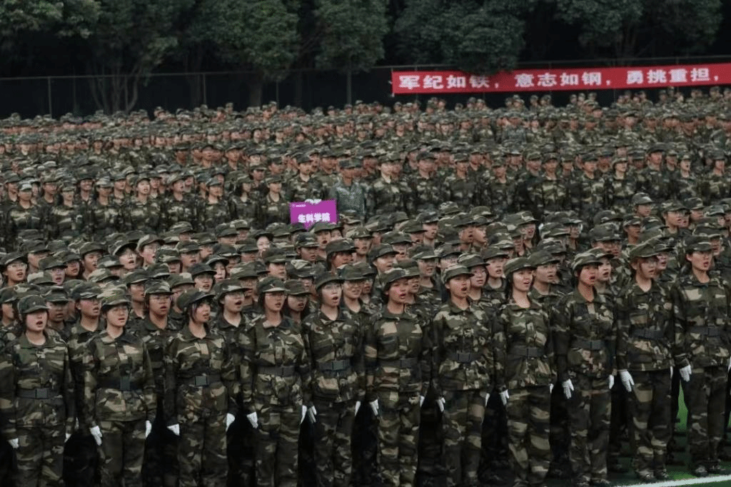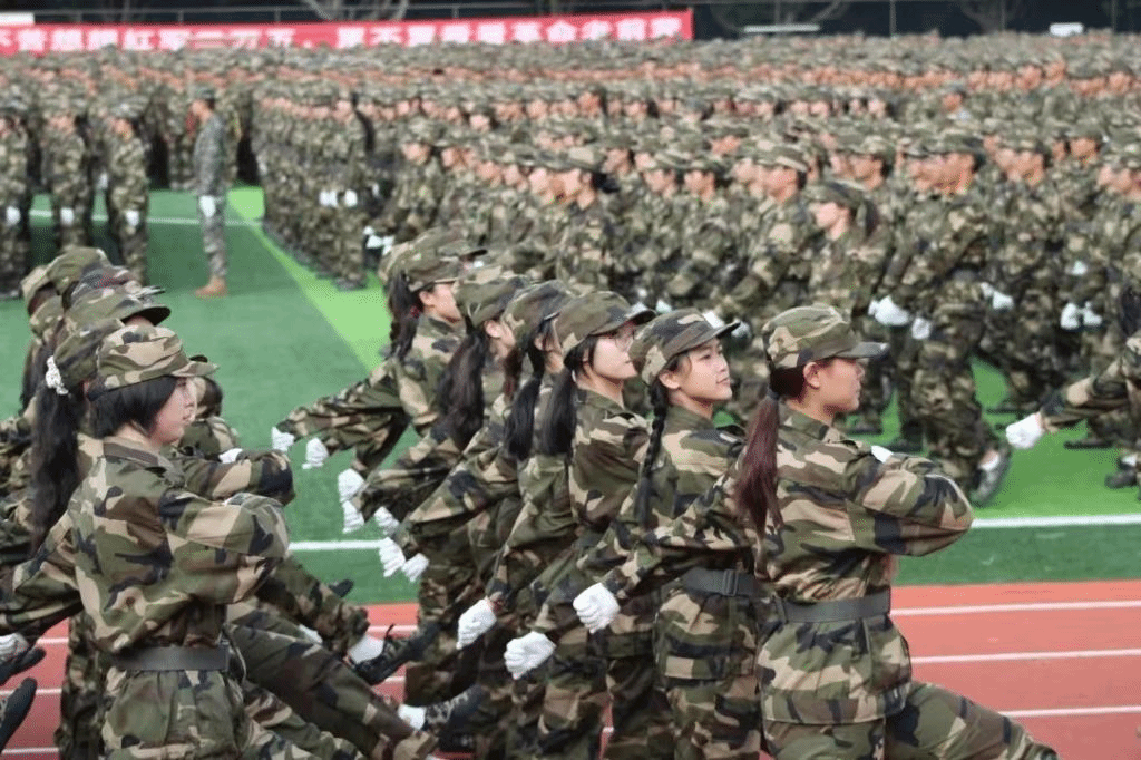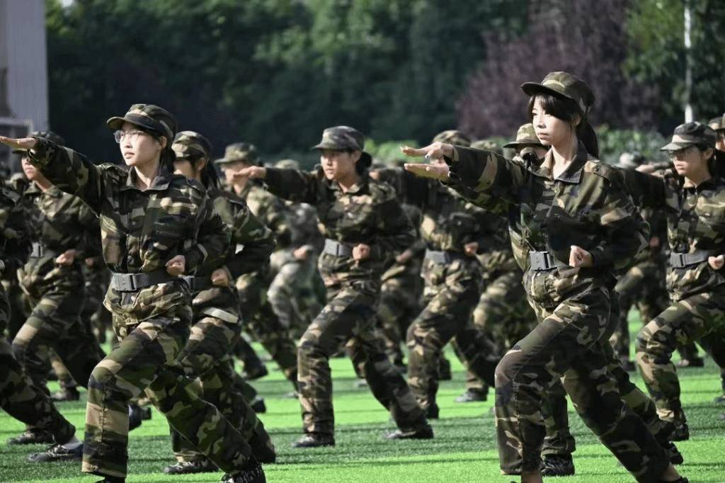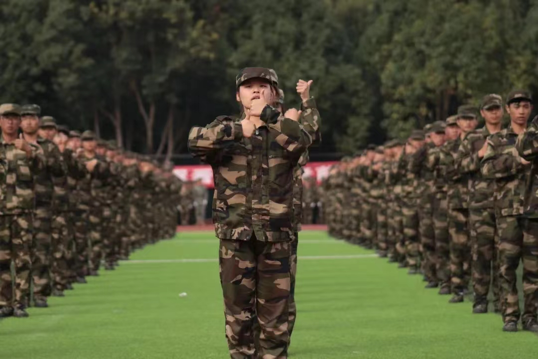 同学们依次进行分列式、字阵队列演示、擒敌拳、心理健康操等科目汇报;迷彩协会带来精彩的山地进攻演练;教官们整齐划一、高度配合,展示了扎实的基本功及良好的军人素养。军训成果汇报赢得全场热烈掌声。