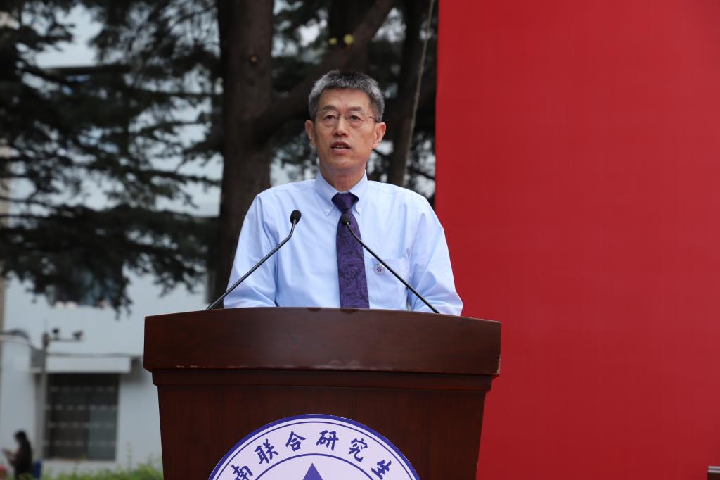 方精云在致辞中指出,为贯彻落实好习近平总书记重要指示精神,在教育部的强力支持下,在省委、省政府的高位推动下,在省委教育工委、省教育厅的直接领导下,北京大学、清华大学、南开大学倾力支持,云南三所高校全力配合,西南联合研究生院体制机制逐步完善,导师队伍不断壮大,研究生培养和科技创新稳步推进,正朝着“建设成为传承西南联大精神的载体、人才引进的基地、人才培养的摇篮、高水平研究平台、高等教育改革创新试验田的一流新型研究生院”的目标阔步前进。方精云对入学新生提出三点期望:一是坚定理想信念,坚守初心使命;二是积极探索创新,勇攀学术高峰;三是提高综合素质,实现全面发展。