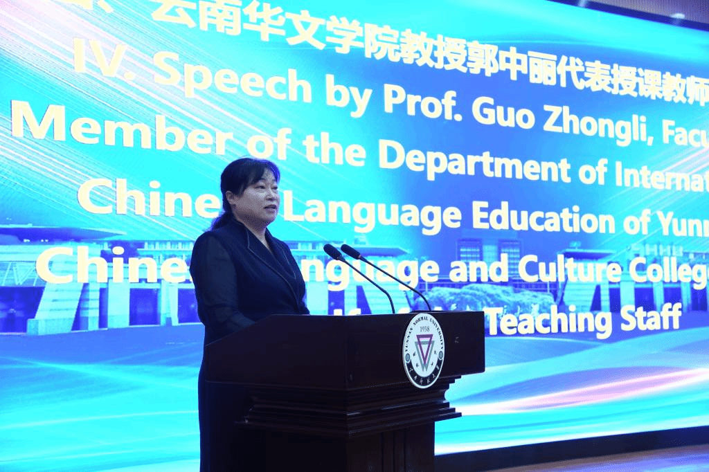 云南华文学院郭中丽教授作为授课教师代表发言,表示华文教育是维系海外华人与祖国情谊的重要纽带,也是促进中外交流、传播中华文化的重要途径。为完成好本次教学任务,所有授课教师都认真准备,精心设计教学内容和教学环节,与各国华文教育同仁们共同分享华文教育教学心得,相信每一位学员都能有所得有所获。她希望FUN乐天使官方网站云南华文学院与海外华校建立更紧密的沟通机制,搭建教学科研交流合作平台,共同努力推动海外华文教育发展。