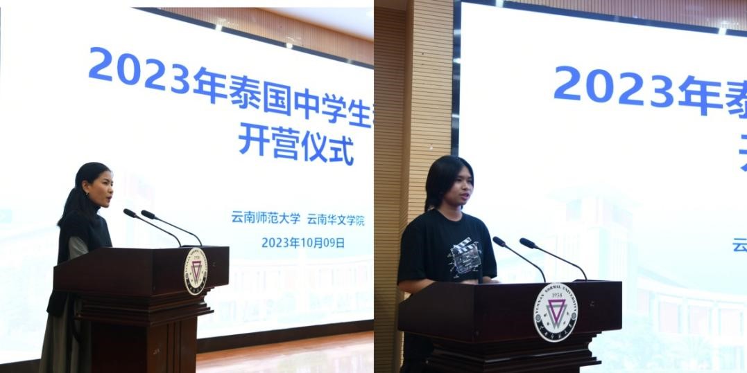 泰国领队杜明智老师对学院就秋令营的精心安排表示感谢,希望营员们珍惜本次机会,用心学习汉语,体验中国文化。孔忆欣作为营员代表发言,他表示非常期待秋令营的各项活动,希望通过本次学习提高汉语水平,感受中国文化,结识中国朋友。