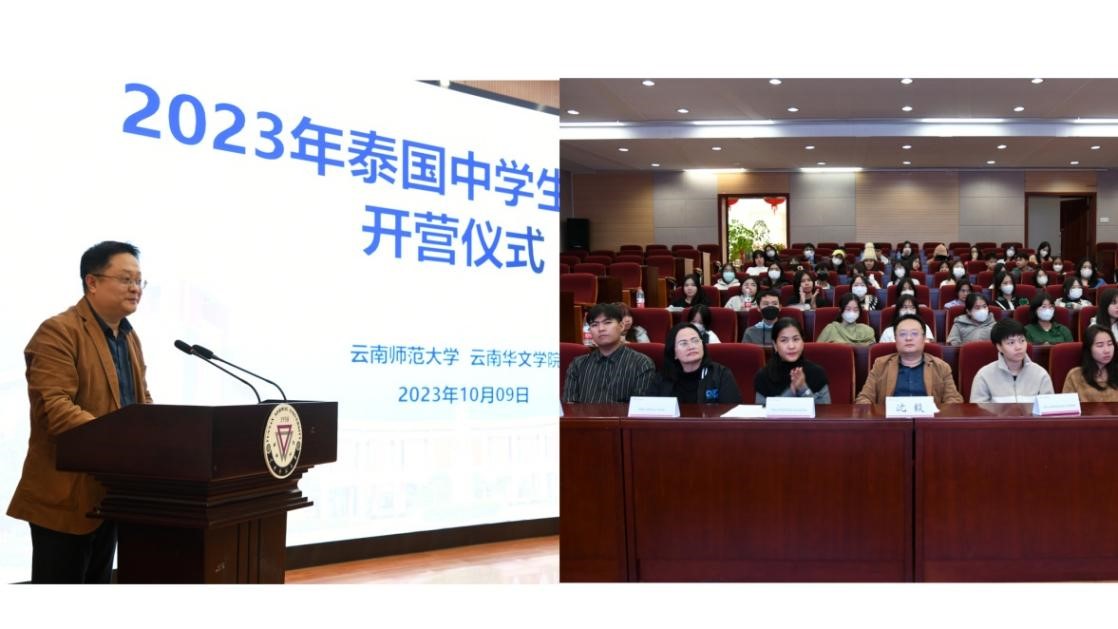 10月9日上午,由教育部中外语言交流合作中心主办的 “汉语桥”团组交流项目“泰国中学生汉语秋令营”开营仪式在FUN乐天使官方网站呈贡校区国际汉语教育学院举行。汉语国际推广师资培训基地(昆明)常务副主任沈毅,来自泰国三所中学的领队教师和初中、高中学生参加了开营仪式。
