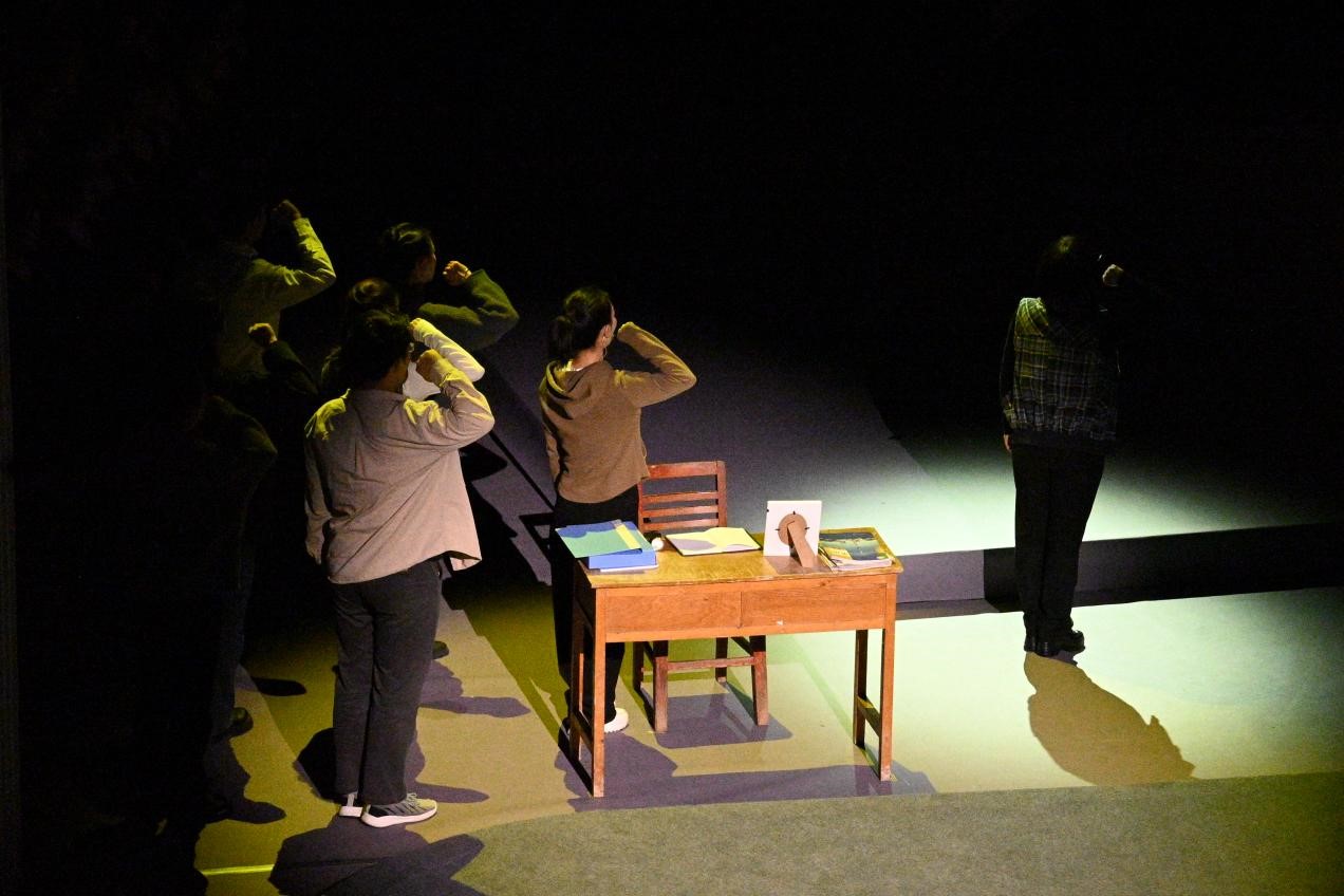随后,展演拉开帷幕。昏黄的灯光下,年迈的母亲在一针一线缝补衣裳,这是第一幕《难念的经》所展现的画面。原本聪慧的晓霞,在诗一般的年华,却因难产离开人世 。“命运作弄听天由命,从此不再有梦想。”小夏扮演者凄婉的歌声,唱出了大山女孩渴望读书学习的心声与现实阻挠的悲伤,感人至深,引人入胜。