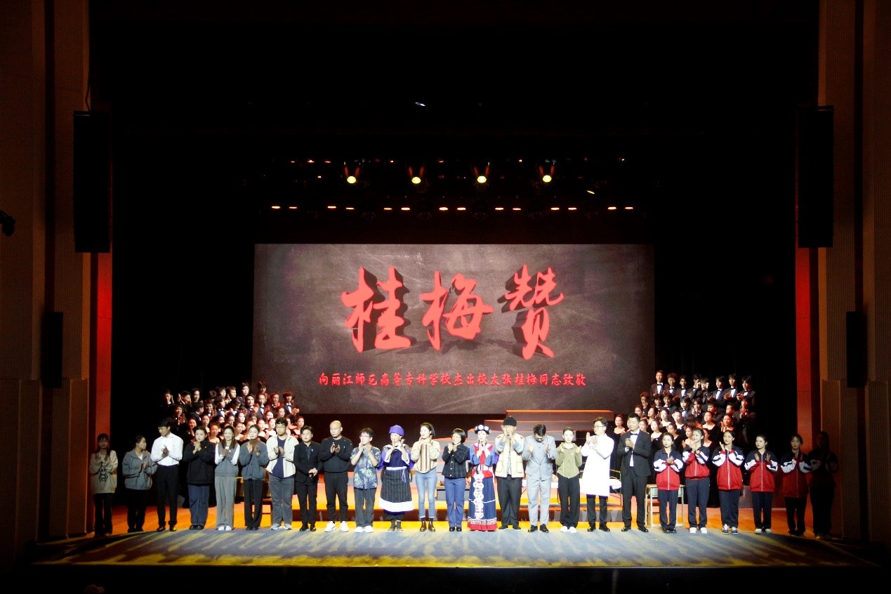 《桂梅赞》是丽江师专以该校杰出校友张桂梅的先进事迹为蓝本创演的原创民族歌剧,2021年12月在丽江成功首演,入选教育部“2023年度高校原创文化精品”,并入选第17届云南省新剧目展演。该剧突出反映张桂梅老师“缺憾中的完美、苦难中的希望、平凡中的伟大”的非凡人生,受到社会的广泛好评。