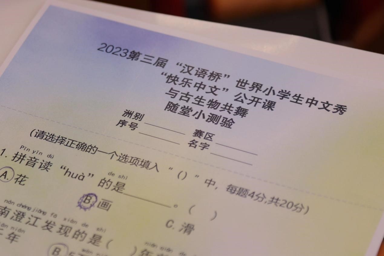 小学生选手也参与了一场有关生命起源的中文公开课,课上做着活泼有趣的小游戏,还进行了汉语测试。