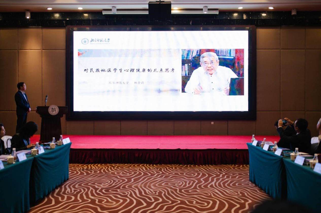 大会上,北京师范大学资深教授林崇德致辞并作了题为《对民族地区学生心理健康的几点思考》的主旨报告。他围绕什么是民族心理、核心素养与心理健康教育以及民族心理与心理健康三个层面,深入浅出地阐述了研究民族地区心理健康教育的重要意义、民族心理学的兴起、民族心理学关注的四个关系、学生发展的核心素养、心理健康服务的四种角色等问题,并针对学生出现的心理问题,向心理健康教师提出了三方面18条建议,为民族地区学生心理健康工作指明了方向。