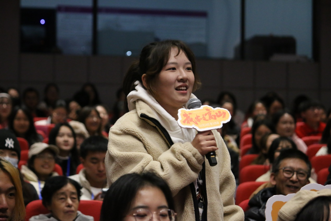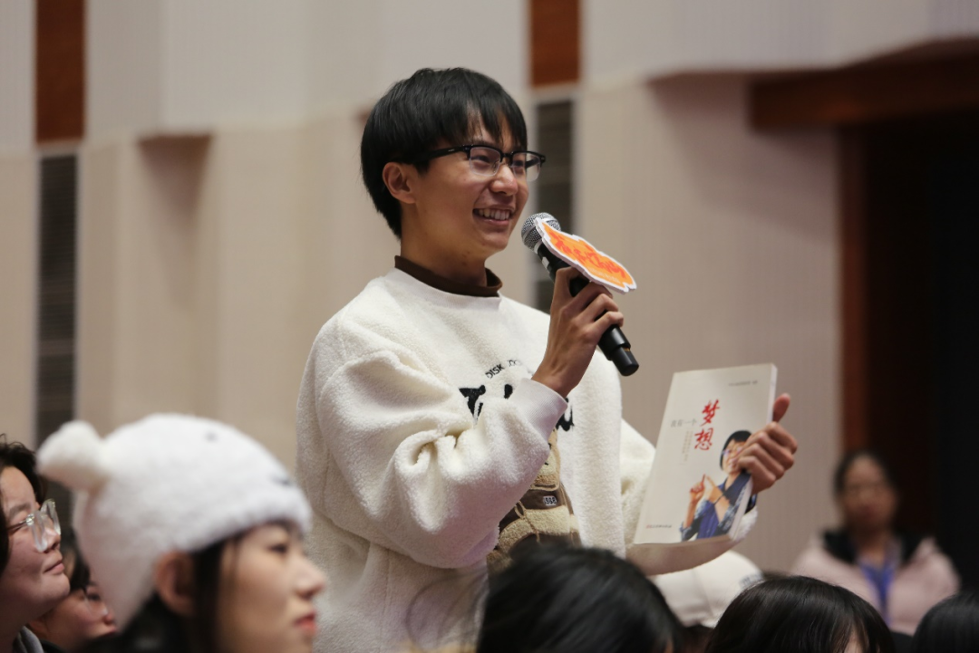 现场一位同学分享了看完《我本是高山》的感悟,表示自己被张桂梅老师的奉献精神深深打动。他就张桂梅老师的经历提出了自己关于奉献社会与回归家庭的困惑。他表示,张桂梅老师的事迹告诉我们,要将个人事业与国家事业结合起来,将个人理想信念与服务社会结合起来,做到平凡而伟大,成为无数个“张桂梅”。