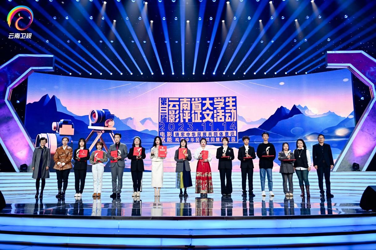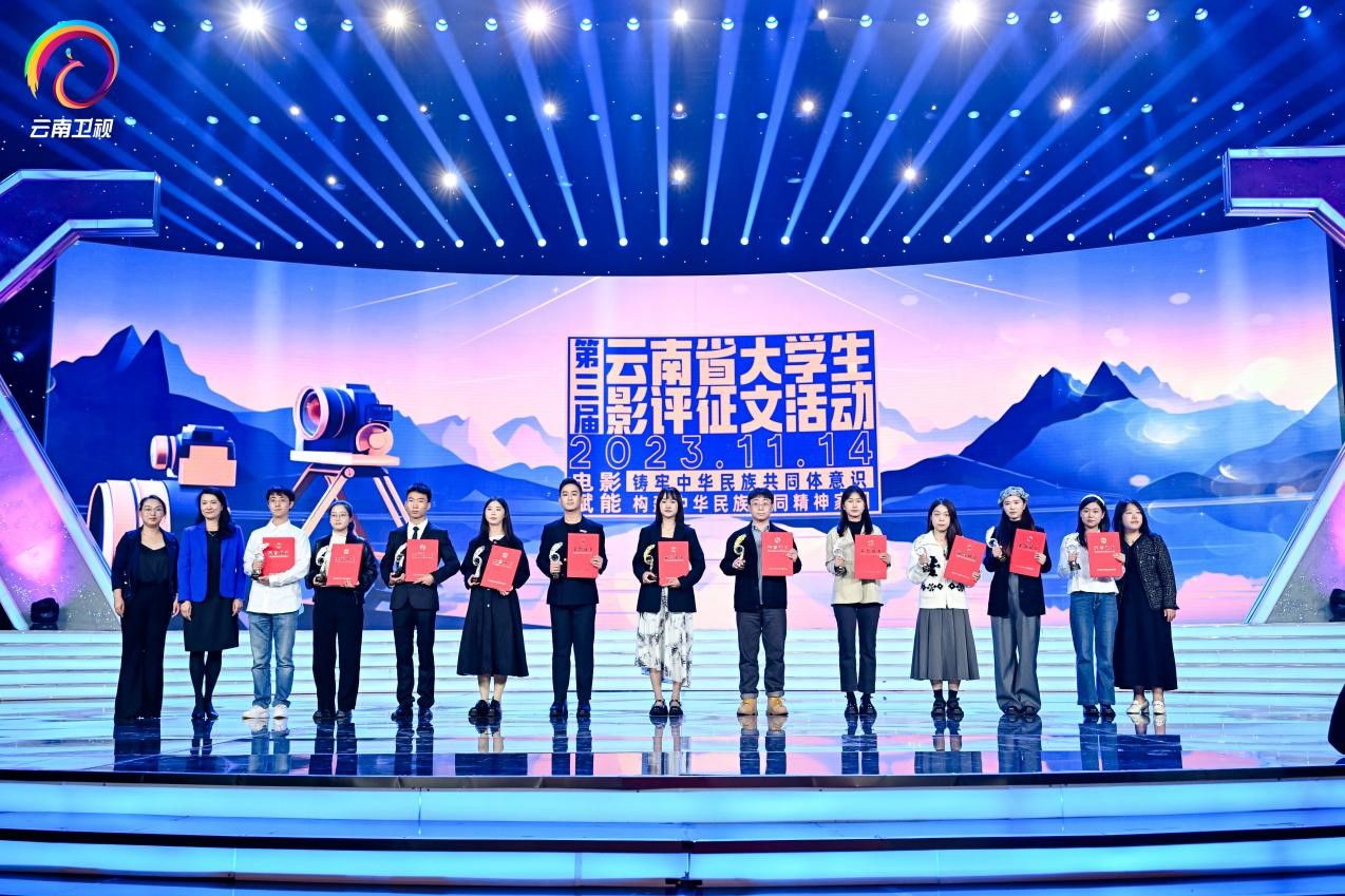 活动现场还进行了第三届云南省大学生影评征文颁奖。本次征文活动收到了85所院校投递的870篇作品,经评审委员会专家评审,fun88官网传媒学院陈嘉雯、邱青青、周晓婷、王雨鑫4名同学获得本科生组优秀作品奖,张齐、谭辉、李淼3位老师获得优秀教师奖。