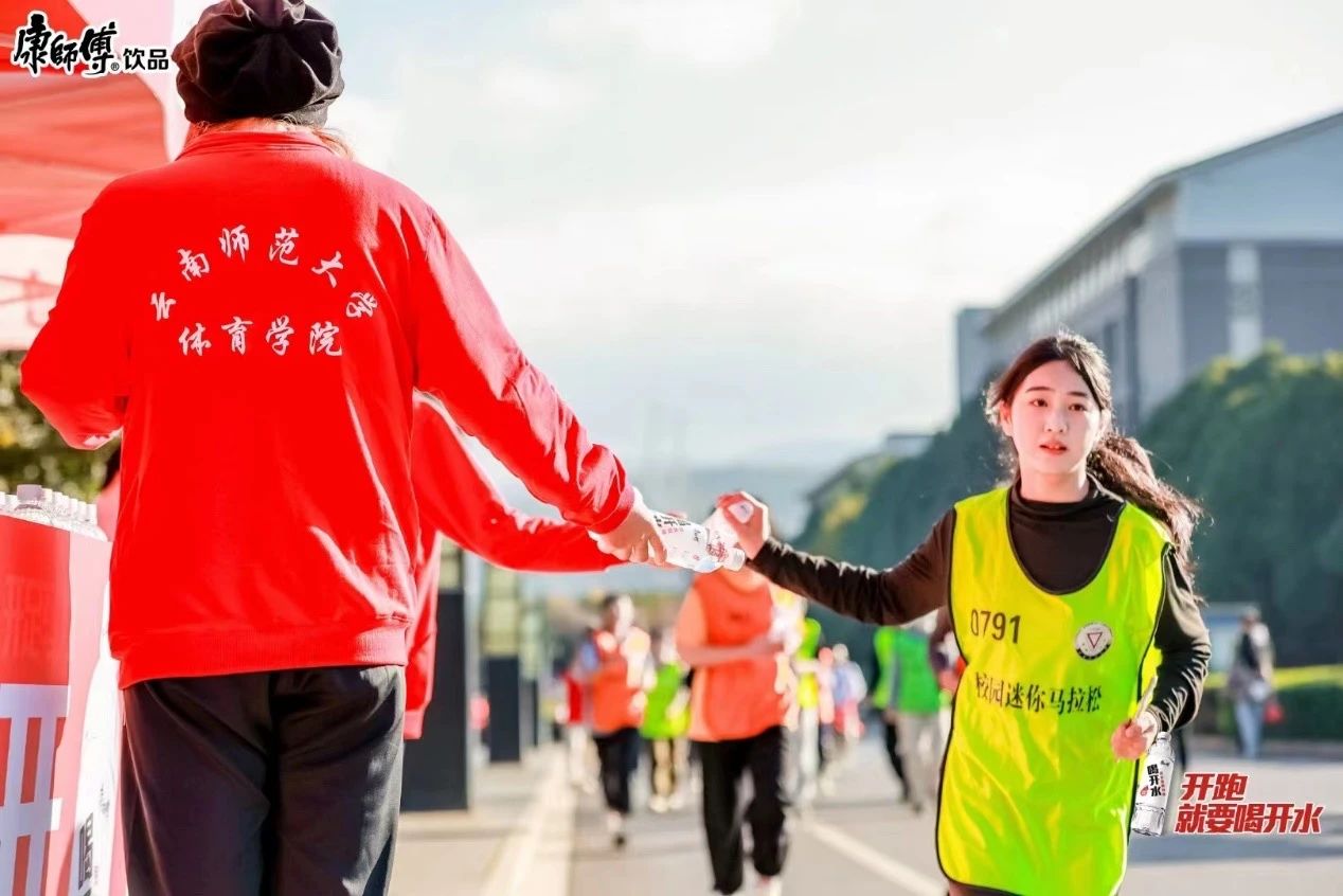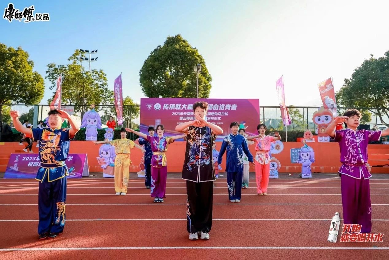 扬武术之魂,展少年风姿。运动员们在跑道挥洒汗水之时,体育学院学子为大家带来精彩的武术表演,为运动员们加油助威。补给站的志愿者们,为运动选手提供了暖心服务,也是跑道上一道靓丽的风景。