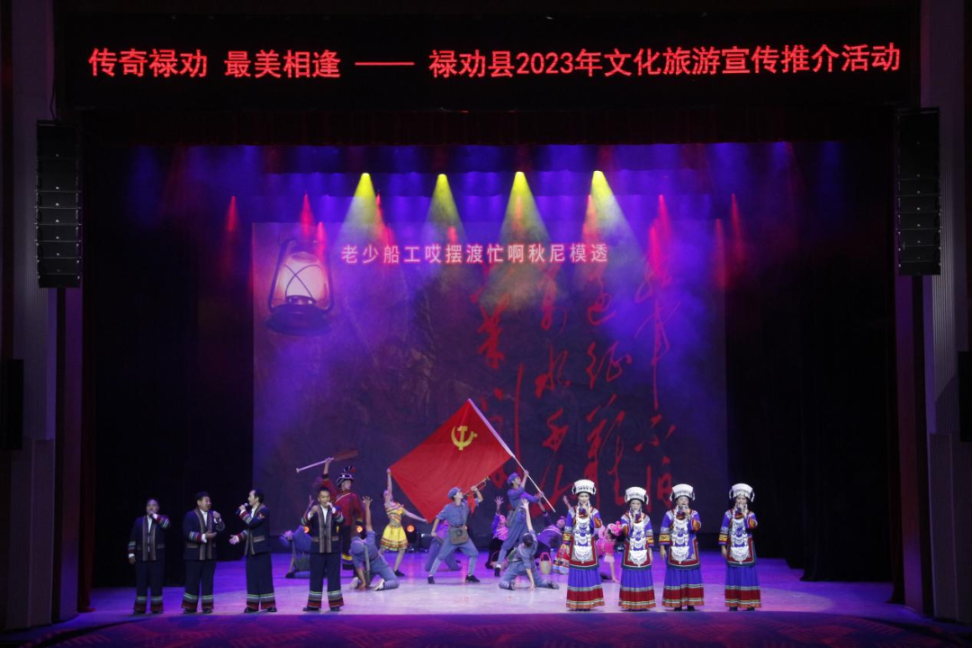 14日晚,文艺演出在音乐舞蹈学院演播厅精彩上演。演出分为罗婺传奇、红色记忆、时代风华三个篇章。禄劝县带来歌曲《彝山的月亮会唱歌》《彝人故乡》《金沙水暖》《醉美轿子山》、舞蹈《针尖上的梦》《傈僳欢歌》《情深意长》《花样跌脚舞》、快板《渡江记》、民族服饰走秀《花语云裳》,fun88官网师生带来器乐合奏《阮之火》、舞蹈《我心中的西南联大》《云水伊人》以及歌曲《共创辉煌向未来》等节目。慷慨激昂的红色歌曲、热情欢快的民族歌舞、独具特色的器乐合奏、多彩的民族服饰走秀……精彩的演出为现场观众带来了一场视听盛宴。