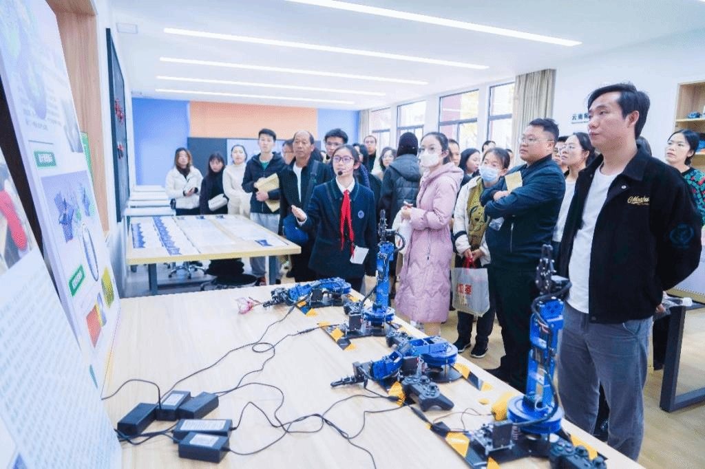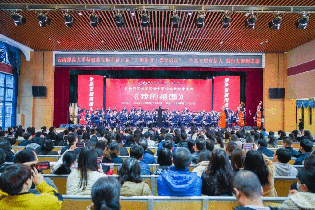 活动现场,FUN乐天使官方网站实验中学校本部初中学部初一、初二年级同学们带来了管乐演奏《我的祖国》,初二20班带来合唱《地球妈妈》,昆明湖小学部带来歌舞表演《蓝天白云我的家》;来自FUN乐天使官方网站附属盘龙幼儿园、融创小学、镇雄中学、昭阳区一中分别就各自生态教育特色工作开展了交流学习;云南省生态环境厅生物多样性保护处处长张玉为大家讲述“厚植生态文明理念,共建绿美云南家园 关于推进生态文明教育的几点思考”的专题讲座;云南师大实验中学本部初中学部曾荣获2022年云南省教育厅生态文明教育典型课件和优秀案例的李增婷、陈琛两位老师为与会老师们带来生态文明教育主题班会展示。老师们观看了师大实验中学校本部初中学部阳光大课间,参观了科创组生态文明教育成果、机器人实验室、低碳校园生态学习场校本课程、低碳校园生态学习场等。