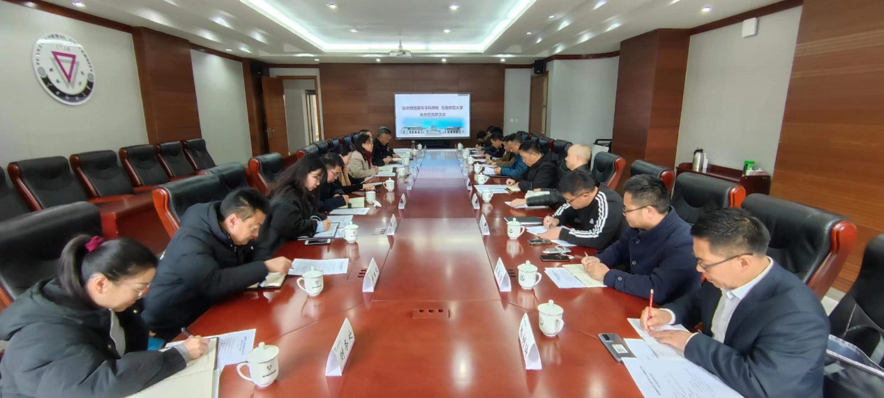 12月26日下午,德宏师范高等专科学校杨明宏校长一行到访fun88官网,就2024年度合作事宜进行商洽,并深入学校相关单位进行调研交流。德宏师专副校长黄鹏、苏军国,以及学校组织部、人事处、科研处、后勤服务中心、学生处、教务处、对外合作交流处等部门负责人参加了调研。fun88官网副校长郝淑美、甘健侯、陈正权分别与来宾进行了交流。