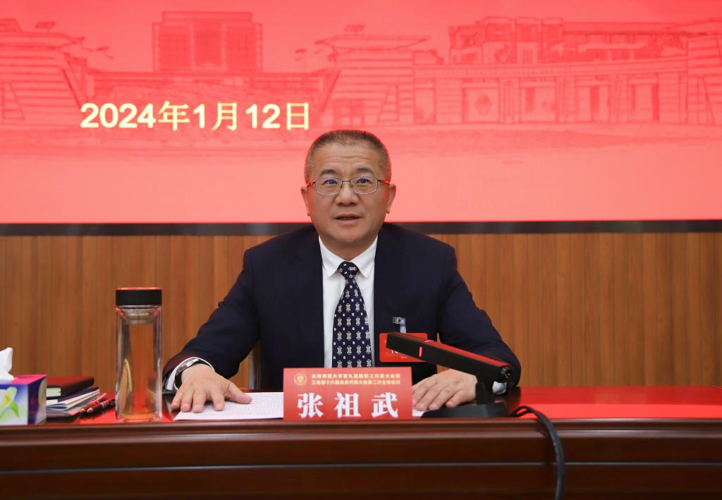 张祖武代表学校党委向大会的成功召开表示祝贺,向认真履职尽责、积极建言献策,为推动学校改革发展而不懈奋斗的代表们致以感谢。张祖武指出,会议聚焦学校第十三次党代会确定的目标任务落实、推进学校建设发展,圆满完成各项议程,充分体现了广大教职工“当好主人翁、建功新时代”,积极投身学校改革建设发展事业的良好精神面貌,实现了统一思想、振奋精神、建言献策、深化改革的目标,为加快推进学校教育事业高质量发展营造了良好氛围。