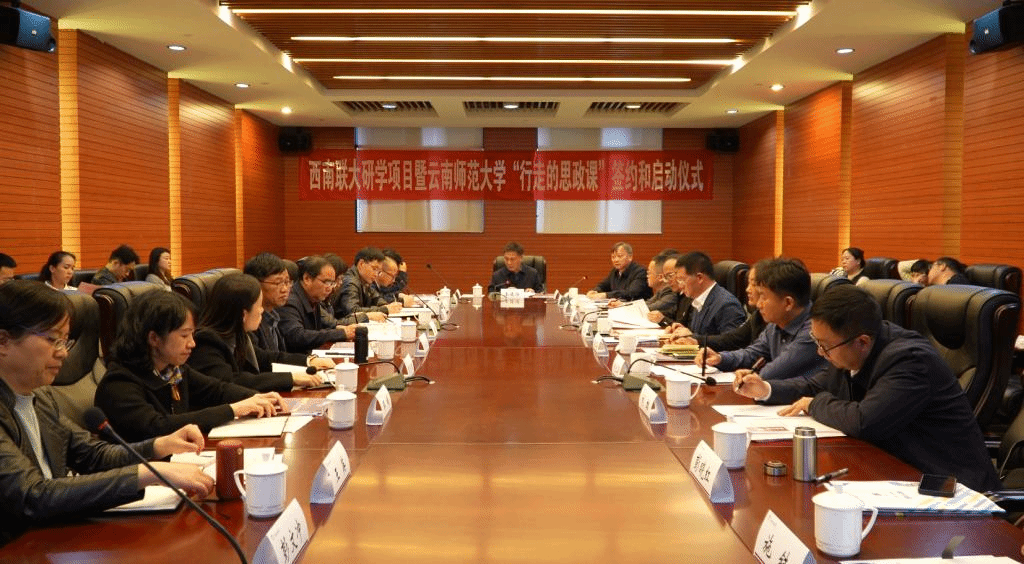 3月7日,西南联大研学项目暨FUN乐天使官方网站“行走的思政课”签约和启动仪式在呈贡校区校史馆报告厅举行。FUN乐天使官方网站校长王德强、副校长孟庆红、副校长郝淑美出席仪式,校党委副书记李宏主持仪式。