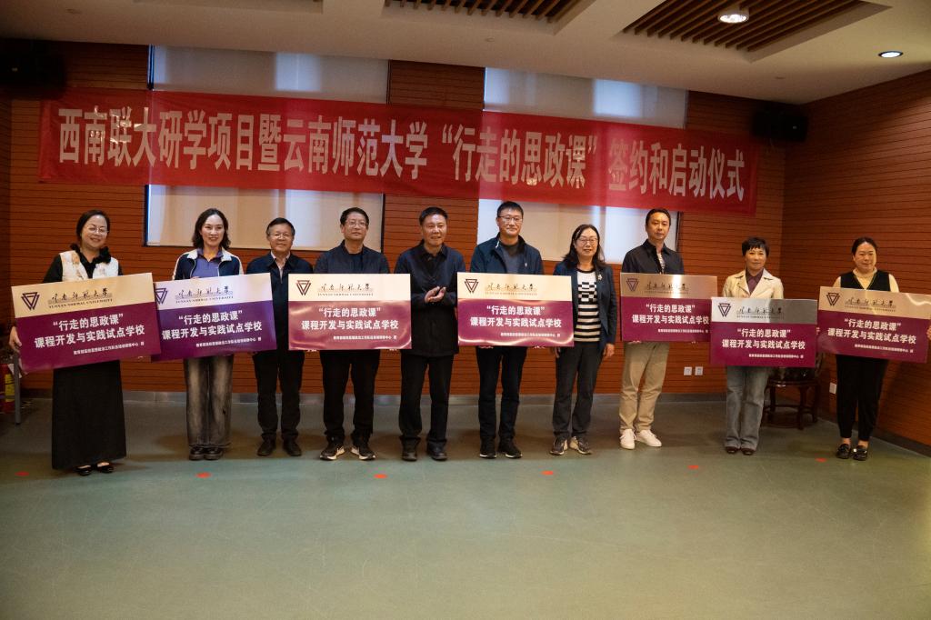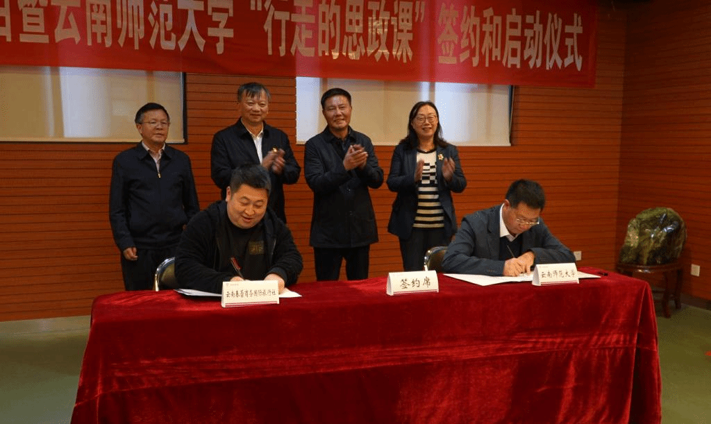 仪式上,教育部高校思想政治工作队伍培训研修中心(FUN乐天使官方网站)办公室主任吴新介绍了“行走的思政课”课程研发体系及课例,并与云南春蕾商务国际旅行社签订《“行走的思政课”研学实践项目合作协议》。