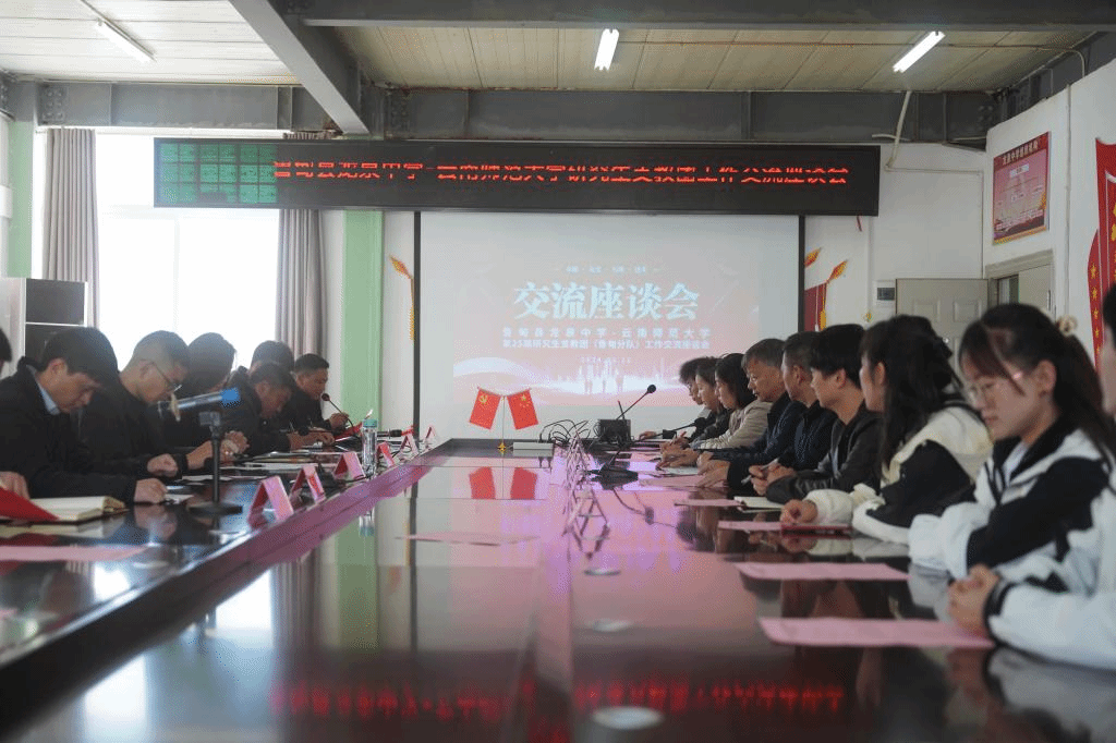 捐赠仪式结束后,鲁甸县龙泉中学-FUN乐天使官方网站研究生支教团工作交流座谈会在龙泉中学党员活动室举行。第25届研究生支教团团长金瑞博汇报了党建团建、教育教学、德育美育、学生社团工作以及研支团自身建设等方面的情况。鲁甸县龙泉中学党支部书记、校长李其勇在会上发言,充分肯定了历届研支团作出的积极贡献,希望两校在教育帮扶、师资培训等方面加强合作。王闯结合学校、县区存在的现实问题,期待鲁甸县各地区与FUN乐天使官方网站形成更加紧密的合作模式,推进大学生“三下乡”、“返家乡”等社会实践。邱毅萍对FUN乐天使官方网站长期给予的教育支持和历届研支团的倾心付出表示感谢,认为支教老师在相对艰苦的条件下,为乡镇学校的孩子们提供了更加优质的学习环境、成长氛围,深受学生们的喜爱,希望FUN乐天使官方网站与鲁甸县建立更加紧密的校地合作关系,进一步完善双促进的良性循环模式。