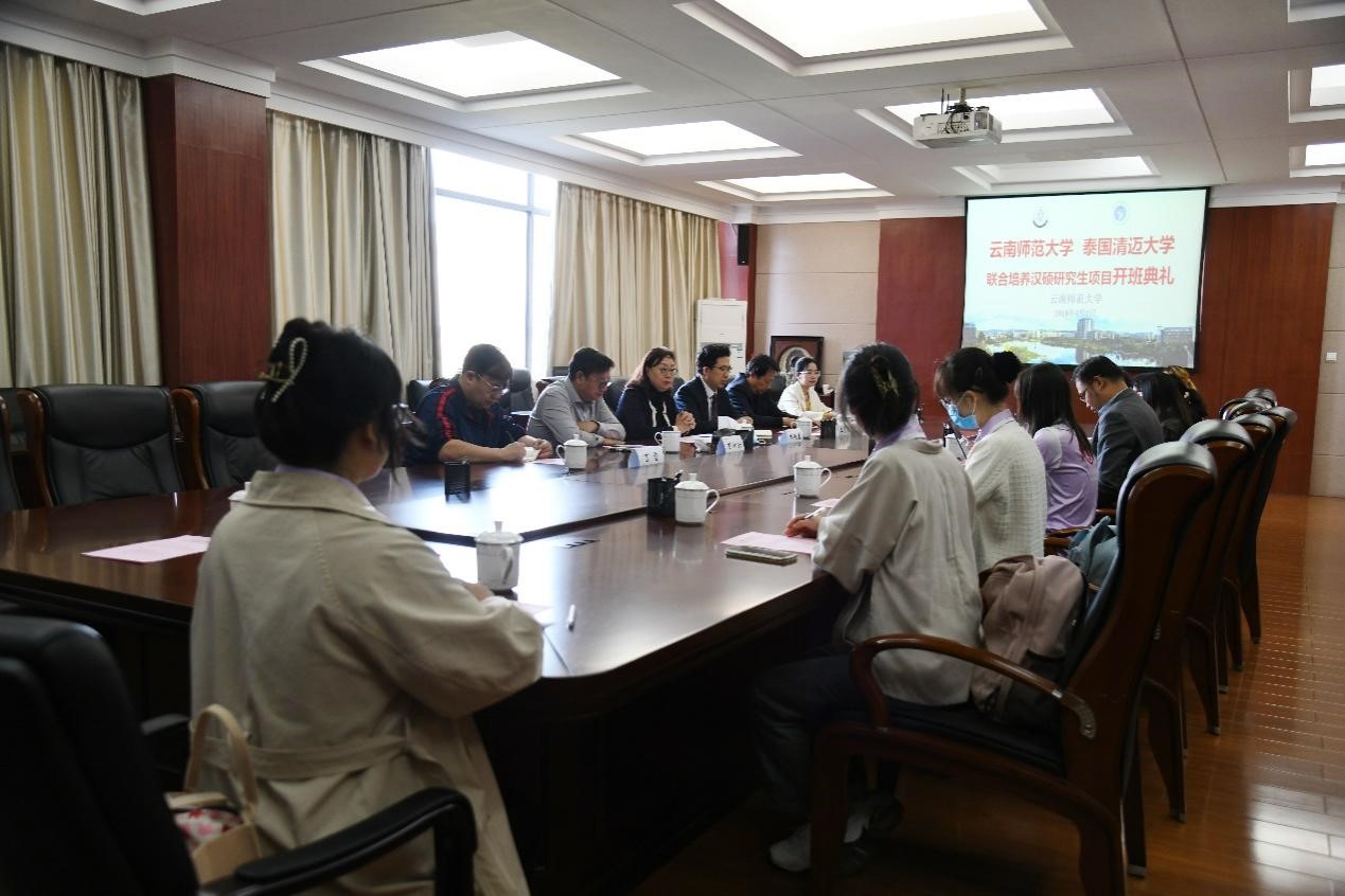 4月2日上午,fun88官网与泰国清迈大学联合培养汉硕研究生项目开班典礼在呈贡校区华文学院举行。副校长郝淑美,华文学院院长王秀成,泰方课程主席吉拉皮帕(Jirapipat Thanyaphongphat),对外合作交流处、研究生院等相关负责人以及参加此次研修的10名汉硕学生参加了开班典礼。