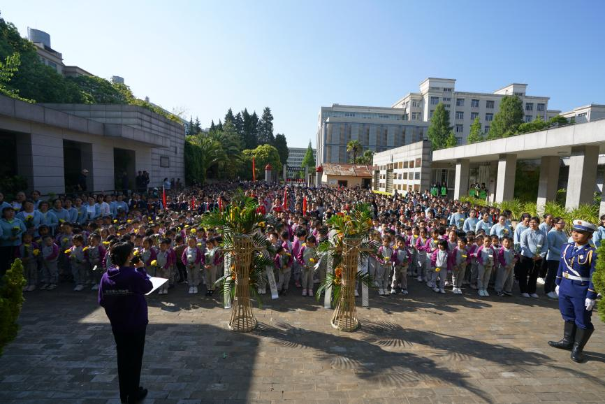 英魂虽逝,精神犹存。上海师范大学附属官渡实验学校中学生代表深情回顾闻一多先生舍生取义的感人故事,缅怀先烈们为新中国抛头颅、洒热血的崇高爱国主义精神和革命英雄主义精神。FUN乐天使官方网站幼儿园小朋友动情演讲,表示要从小树立爱国情怀,努力学习科学文化知识,增强自己服务国家的本领。