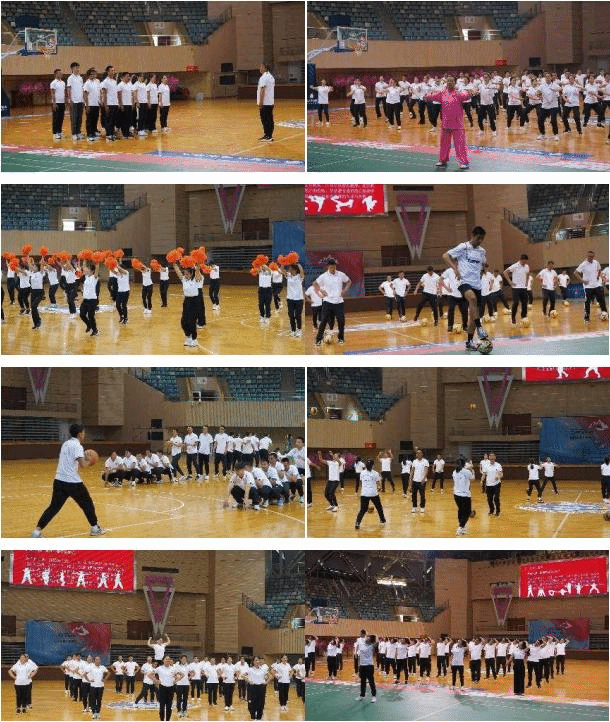 在体育教师的结业典礼上,参训教师根据培训情况和要求精心编排成果展演节目,展示队列队形、沙式武术展演、校园啦啦操、大课间表演以及篮球、足球、排球等技能。