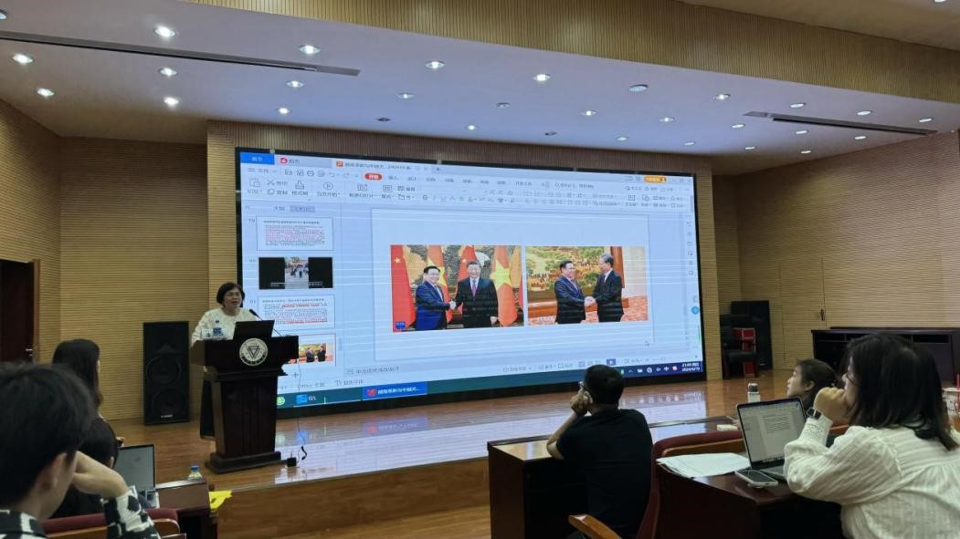 讲座伊始,潘金娥强调了中越关系研究的必要性。中越两国是山水相连的友好邻邦,2023年12月,中越两国签订了构建具有战略意义的中越命运共同体的联合声明,提升了两国关系的定位,中越关系开启新的历史篇章。