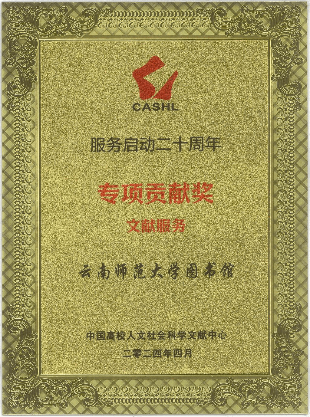 近日,中国高校人文社会科学文献中心(CASHL)管理中心在复旦大学举办“纪念CASHL服务启动二十周年•外文人文社科文献保障体系高质量发展研讨会”,fun88官网图书馆荣获文献服务“专项贡献奖”。