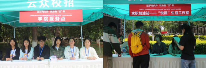 招聘会上,华文国语学院“悦翔”生涯工作室为2024届毕业生开设了“求职加油站”,从简历指导、就业创业政策普及、征兵政策咨询、职业发展规划指导等方面助力毕业生尽早就业、充分就业。