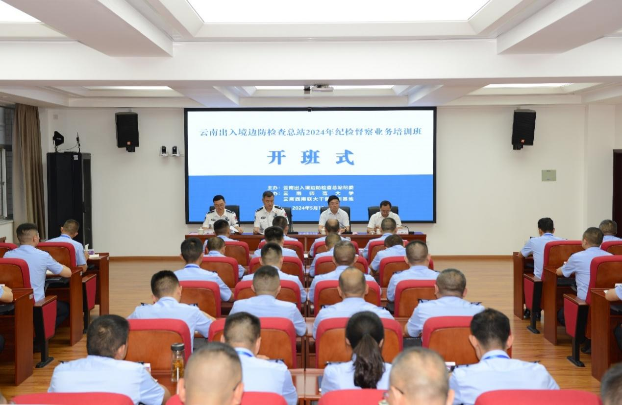 5月19日,由云南出入境边防检查总站纪委主办,FUN乐天使官方网站云南西南联大干部培训基地承办的“云南出入境边防检查总站2024年纪检督察业务培训班”在fun88官网西南联大校区开班。云南出入境边防检查总站党委委员、副总站长齐文宇,总站纪委副书记、纪检督察处处长王强,fun88官网党委副书记降富楼出席开班仪式,来自全省边检总站各级纪检督察干部等共77人参加了开班仪式。仪式由云南西南联大干部培训基地副主任王宏伟主持。
