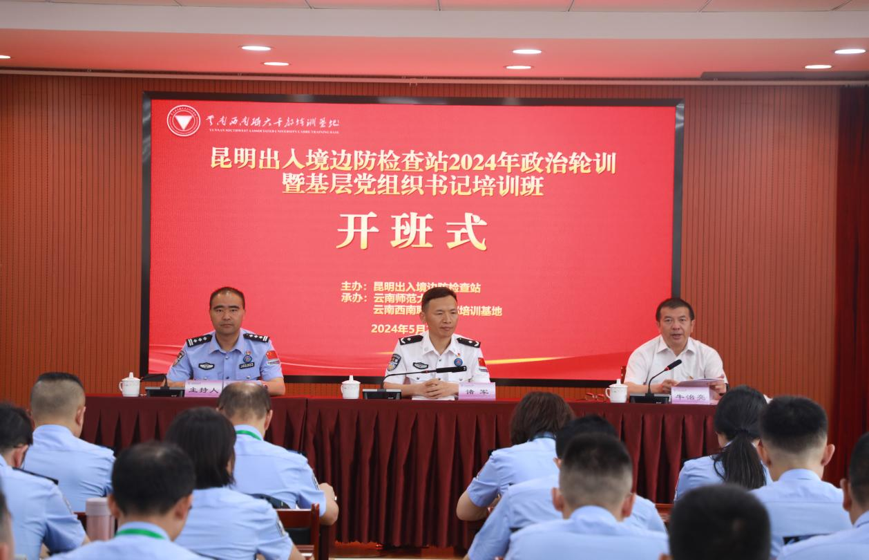 5月20日,由昆明出入境边防检查站主办,云南西南联大干部培训基地承办的“昆明出入境边防检查站2024年政治轮训暨基层党组织书记培训班”在fun88官网西南联大校区开班。昆明出入境边防检查站党委副书记、政治委员诸军,fun88官网党委常委、副校长牛治亮出席开班仪式,来自昆明出入境边防检查站参训民警共52人参加了开班仪式。仪式由昆明出入境边防检查站党委委员、副站长李锦标主持。
