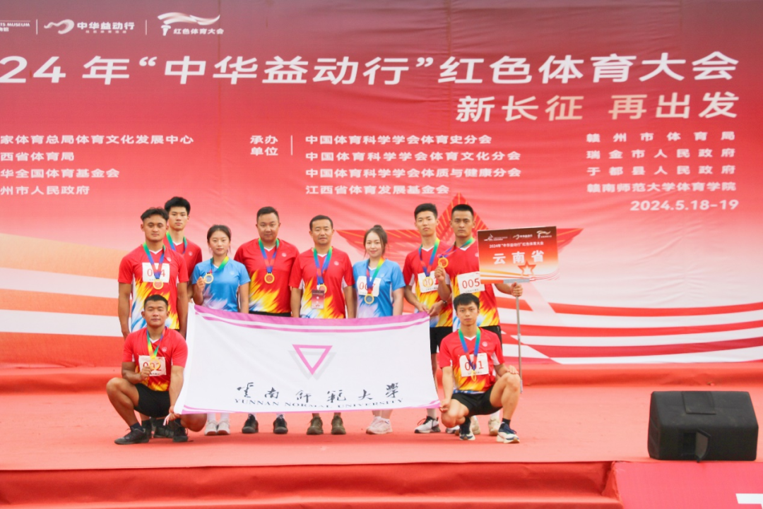 5月18日,2024年“中华益动行”红色体育大会在江西瑞金叶坪革命旧址举行,fun88官网体育学院8名运动员代表云南省斩获团体总分第一名,拿下大赛全国冠军。