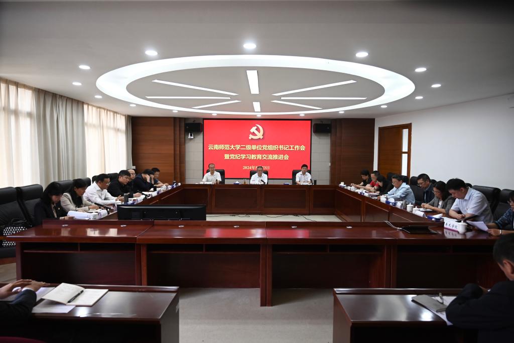 会上,降富楼通报了学校党纪学习教育开展情况并对近期重点工作作出安排。校党委常委、统战部部长吴雁江对抵御宗教渗透和防范校园传教工作作安排。化学化工学院、音乐舞蹈学院、资产经营有限责任公司、云南民族中学党组织书记就党纪学习教育推进情况进行交流发言,历史与行政学院、附属小学、物理与电子信息学院、美术学院党组织书记就推动省委巡视反馈意见整改落实情况进行交流发言。