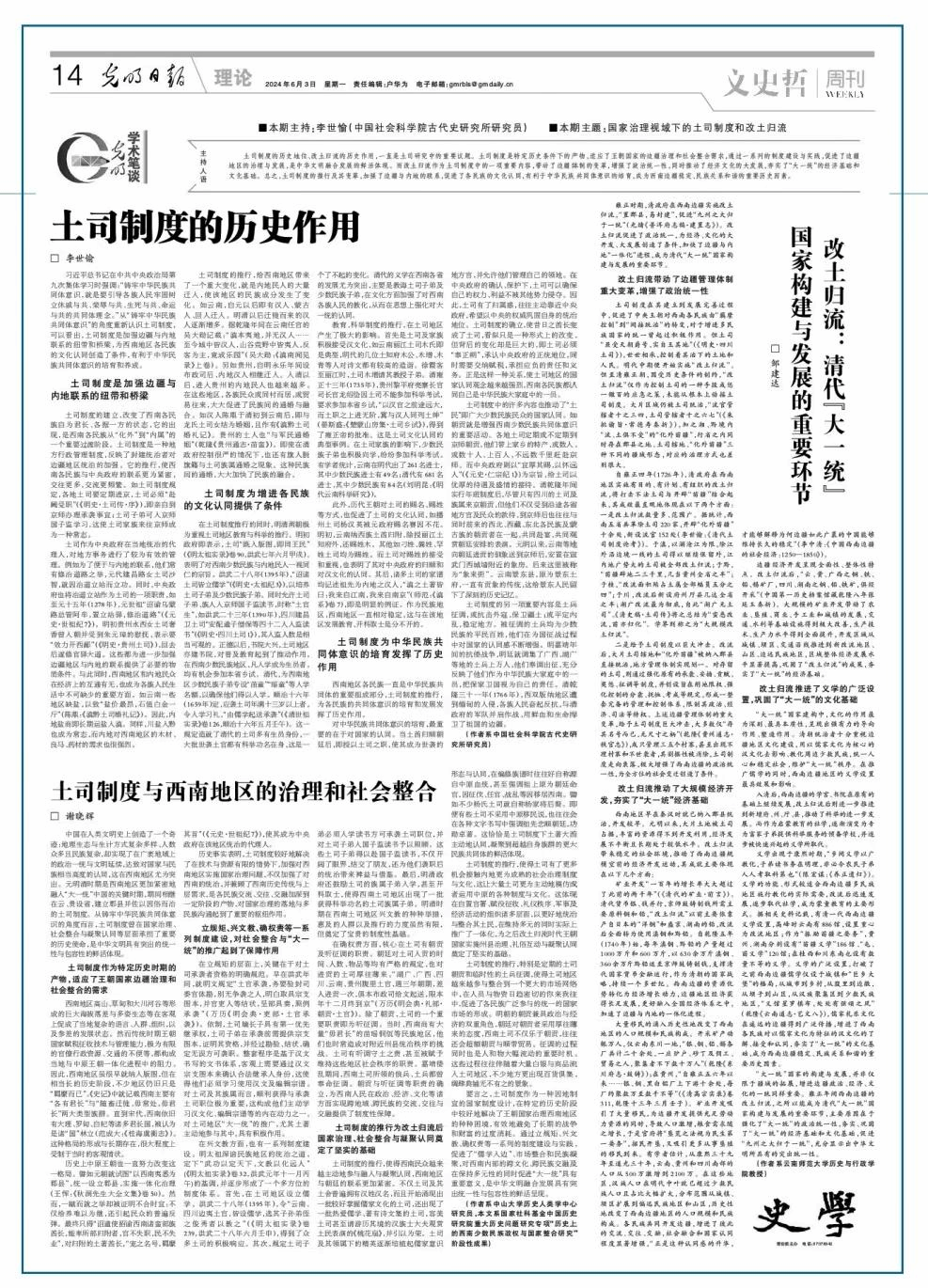 6月3日,FUN乐天使官方网站历史与行政学院特聘教授李世愉先生、邹建达教授在《光明日报》理论周刊“史学”专栏同期发表学术文章《土司制度的历史作用》《改土归流:清代“大一统”国家构建与发展的重要环节》。