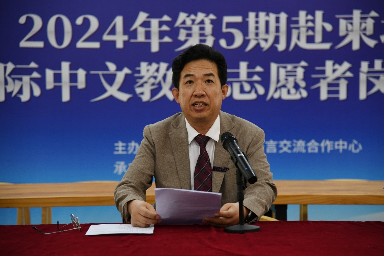 张鹏作为教师代表,阐述了成为优秀国际中文教师所需要具备的知识和能力。他表示本次培训的课程设置注重理论联系实际,观摩与实操相结合,通过三十多个专题讲座与教学实训专项技能训练等多种方式,帮助学员们快速提高教学实践能力。